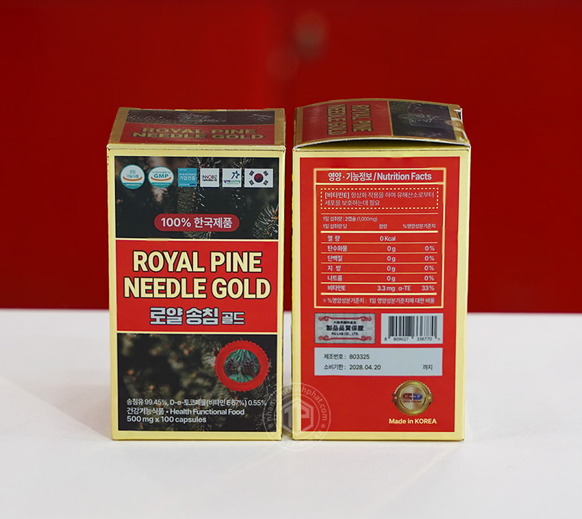 ✔ Viên tinh dầu thông đỏ Hàn Quốc Hwangje Power Gold được chiết xuất từ lá của thông đỏ và lá thông kim, mang nguồn dưỡng chất quý giá cho sức khỏe.