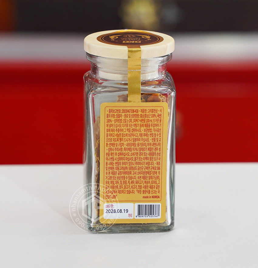✔ 100% nhân sâm Geumsan Hàn Quốc qua quá trình hấp sấy thành hồng sâm củ khô nguyên chất, được sấy khô thái lát sẵn, và đóng lọ thủy tinh tiện lợi sử dụng.
