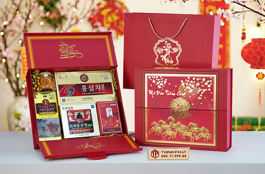 Xuân 2026, Thịnh Phát trình làng các mẫu hộp quà Tết sang trọng, ý nghĩa với thiết kế hiện đại, bắt kịp xu hướng. Tùy theo sở thích hay nhu cầu biếu tặng mà quý khách có thể yêu cầu nhân viên lựa chọn cho riêng mình một set quà tặng theo ý muốn.
