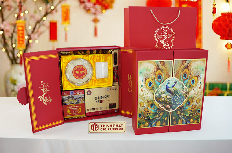 Xuân 2026, Thịnh Phát trình làng các mẫu hộp quà Tết sang trọng, ý nghĩa với thiết kế hiện đại, bắt kịp xu hướng. Tùy theo sở thích hay nhu cầu biếu tặng mà quý khách có thể yêu cầu nhân viên lựa chọn cho riêng mình một set quà tặng theo ý muốn.