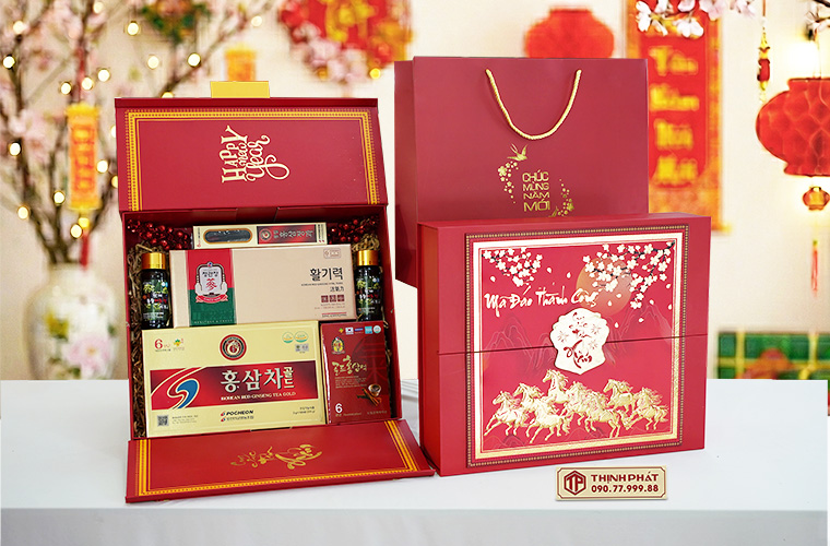 Xuân 2026, Thịnh Phát trình làng các mẫu hộp quà Tết sang trọng, ý nghĩa với thiết kế hiện đại, bắt kịp xu hướng. Tùy theo sở thích hay nhu cầu biếu tặng mà quý khách có thể yêu cầu nhân viên lựa chọn cho riêng mình một set quà tặng theo ý muốn.