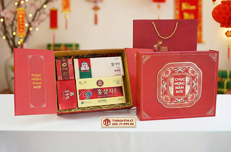 Xuân 2026, Thịnh Phát trình làng các mẫu hộp quà Tết sang trọng, ý nghĩa với thiết kế hiện đại, bắt kịp xu hướng. Tùy theo sở thích hay nhu cầu biếu tặng mà quý khách có thể yêu cầu nhân viên lựa chọn cho riêng mình một set quà tặng theo ý muốn.