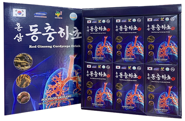 • Nước hồng sâm đông trùng hạ thảo bổ phổi Pocheon hộp 30 gói x 70ml có doanh số tăng vượt trội trong 2 năm đại dịch nhờ công dụng bổ phổi, hỗ trợ đào thải độc tố, tăng cường chức năng hô hấp, bảo vệ phổi khỏi những tác động của virus, vi khuẩn.