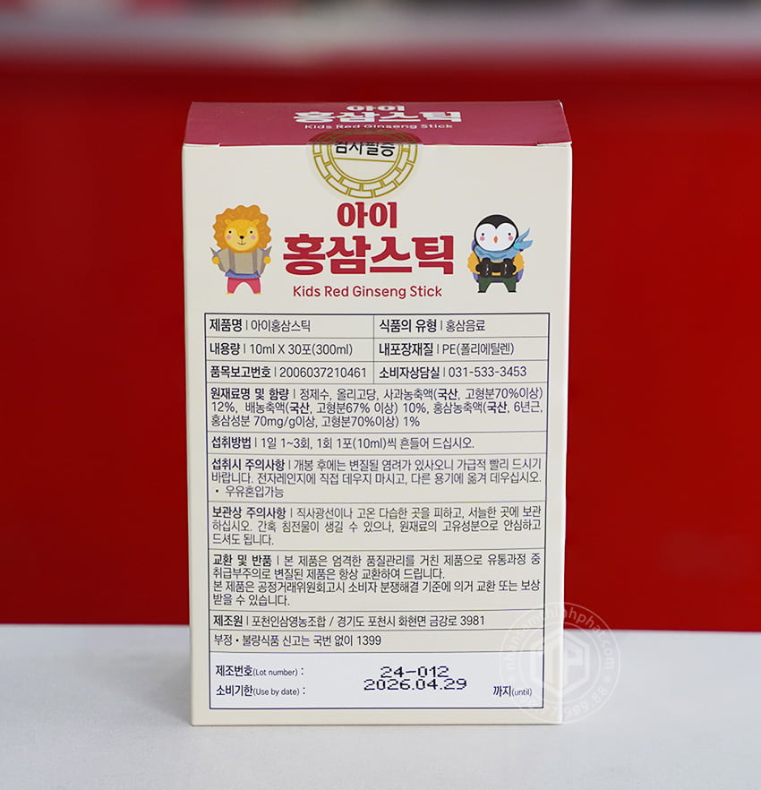 • Hồng sâm dành cho trẻ em dạng thanh - Kids red ginseng stick là dòng sản phẩm có hương vị táo, lê kết hợp với hồng sâm tạo ra vị ngọt đặc trưng, rất thích hợp cho trẻ, để bồi bổ, tăng cường sức đề kháng, cải thiện hệ miễn dịch… tạo nền tảng tốt để trẻ phát triển toàn diện về thể chất và trí tuệ.
